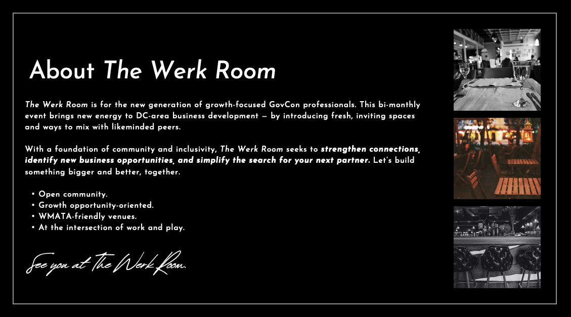 As the lead strategist, I focused on developing a cohesive brand identity that reflects the vibrancy and diversity of the LGBTQ community while positioning the event as a cornerstone of professional and personal development in the region. This strategy emphasizes the unique value proposition of The Werk Room: a welcoming environment where meaningful business connections are built.